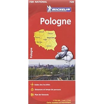 Carte routière et touristique Michelin : pour être bien guidé et vraiment libre !Mise à jour chaque année la carte Pologne au 1/700 000 (1cm = 7km) vous apporte une vue d'ensemble. Retrouvez l'index des localités, le tableau des distances et des temps de parcours ainsi que les plans de Varsovie. Pour plus de découverte, la carte vous indique également les routes pittoresques et les points de vue.