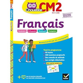 Un cahier conforme au nouveau programme pour s'entraîner en français CM2 : les leçons à savoir ; 400 exercices progressifs ; des astuces pour les enfants et des conseils pour les parents. Des cartes mentales pour organiser ses connaissances et mieux mémoriser. Les corrigés dans un livret détachable. Jeux et exercices interactifs sur www.hatier-entrainement.com