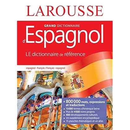 La richesse de la nomenclature de ce Grand Dictionnaire d'Espagnol (plus de 800 000 mots et expressions) en fait le plus complet des dictionnaires bilingues espagnol.Plus de 800 000 mots et expressions. Un panorama des niveaux de langue et des champs lexicaux encore élargi pour refléter l'évolution du monde actuel. Un enrichissement du vocabulaire de l'Amérique latine. Et aussi : une abondance d'exemples, de nombreux encadrés encyclopédiques, des suppléments placés en milieu d'ouvrage (des proverbes, des planches illustrées, des cartes géographiques et un cahier culturel sur l'évolution des langues et l'histoire de l'art.) La présentation clarifiée améliore la lisibilité : articles plus structurés, texte en deux couleurs, graphisme séduisant.