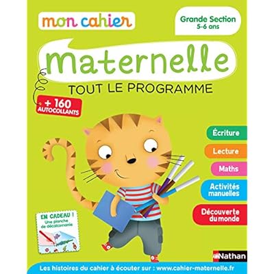 Un cahier pour poursuivre à la maison les apprentissages de l'école !Des activités ludiques et variées pour revoir la totalité du programme de la classe de Grande Section de maternelle : - En écriture pour s'initier à la maîtrise du geste et s'exercer à tracer des lettres - En lecture pour une première approche du monde de l'écrit avec des activités de reconnaissance des mots et des histoires - En maths pour s'initer à la numération et se repérer dans l'espace - En découverte du monde pour se familiariser avec son environnement et enrichir son vocabulaire + Des activités manuelles pour développer son habileté, son sens pratique et son imagination. + Plein d'autocollants pour apprendre tout en s'amusant. EN CADEAU : un magnet de Micha le chat ! Les histoires du cahier à écouter sur : www.cahier-maternelle.fr