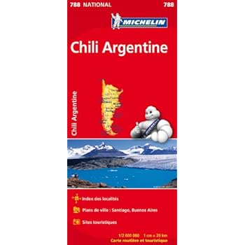 Carte routière et touristique Michelin : pour être bien guidé et vraiment libre !Mise à jour chaque année la carte Chili Argentine au 1/2 000 000 (1cm = 20km) vous apporte une vue d'ensemble. Retrouvez l'index des localités, les plans de Santiago et Buenos Aires ainsi que les sites touristiques.